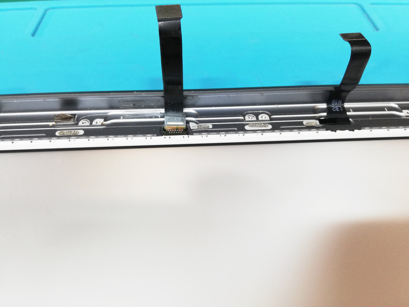 Questo cavo lavora con una tensione di circa 50V, necessaria per alimentare correttamente tutti i LED del display. Il danneggiamento del flat ha quindi causato lo spegnimento totale della retroilluminazione.