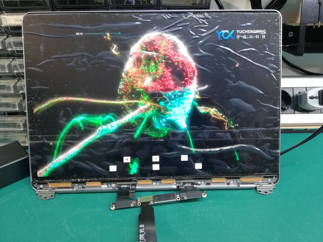 Il liquido ha raggiunto anche la parte inferiore del display, andando a danneggiare il cavo Flat responsabile della gestione della retroilluminazione.
