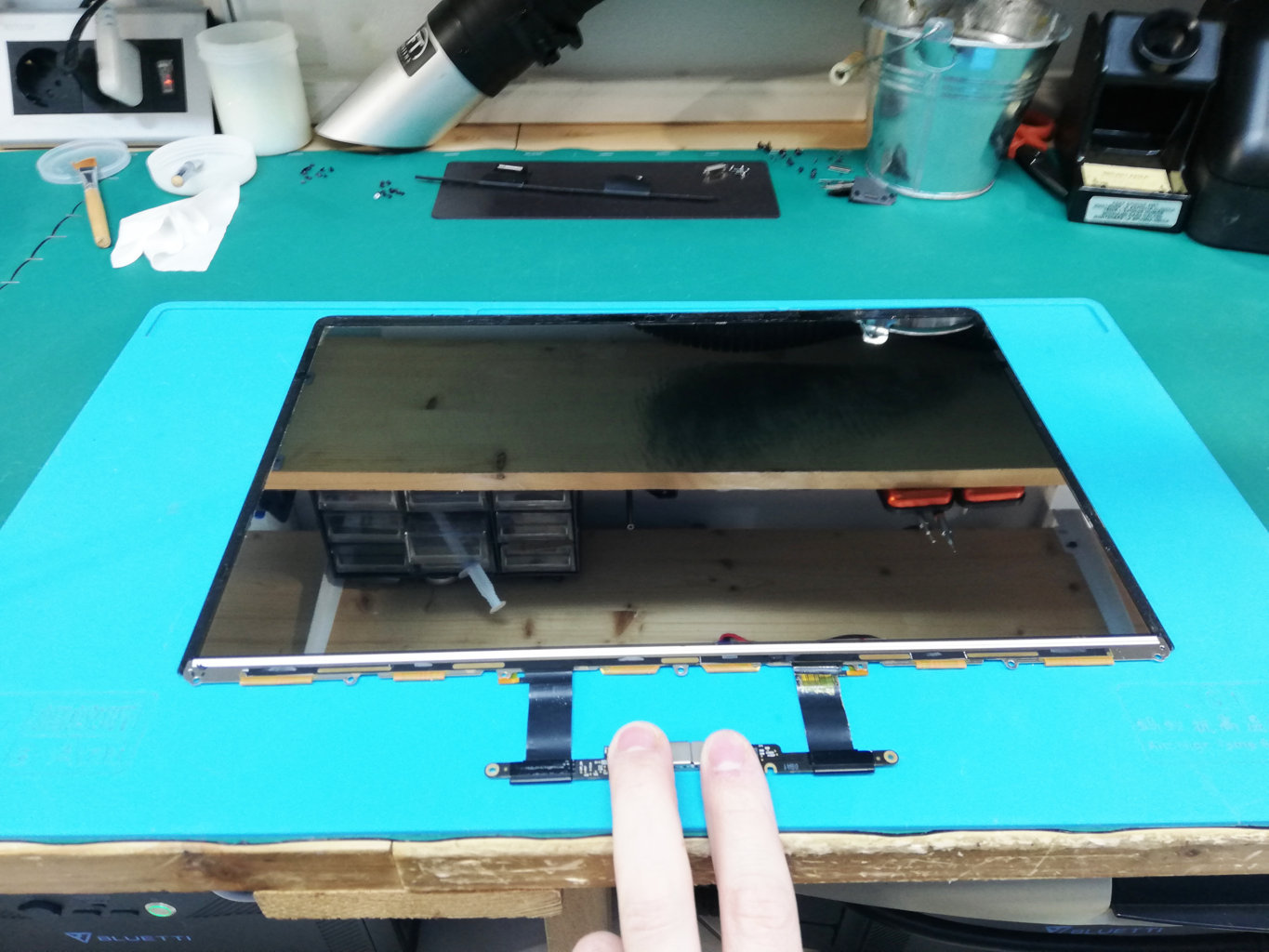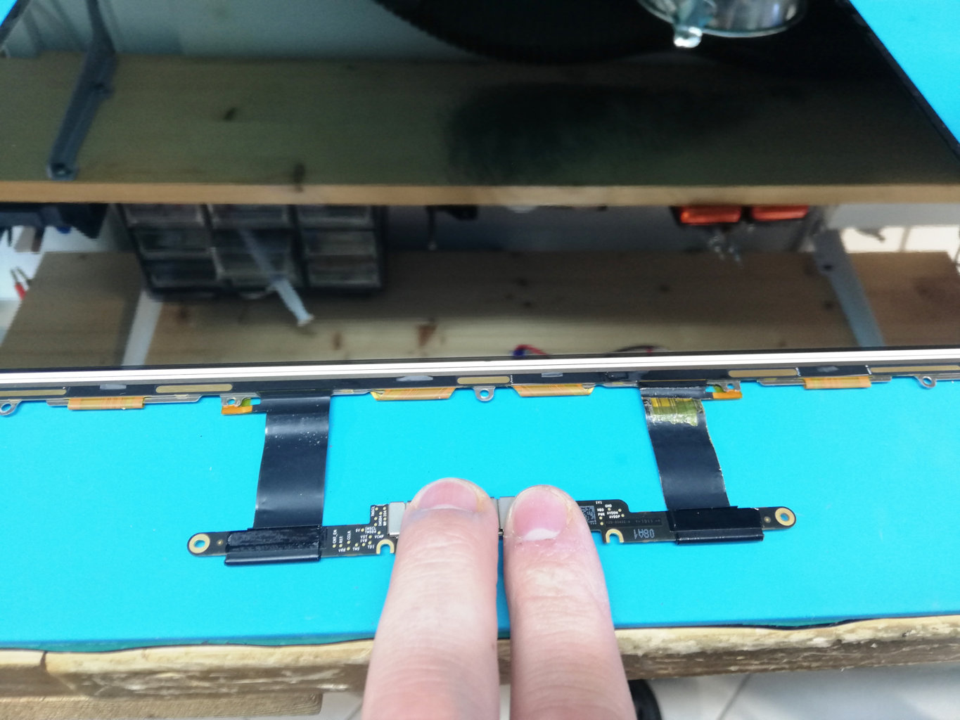 - rimuovere i cavi Flat video danneggiati, saldati sul retro del display