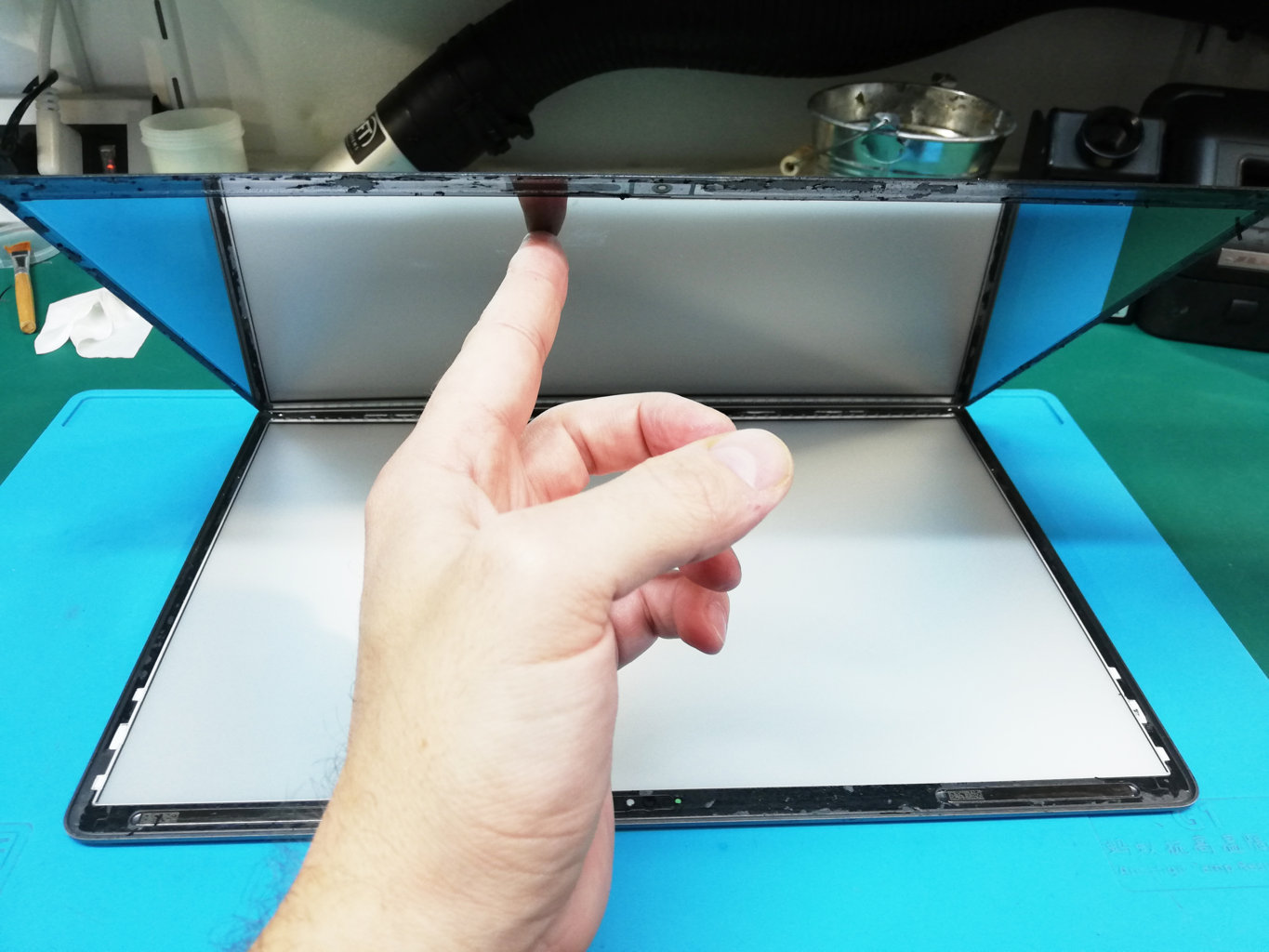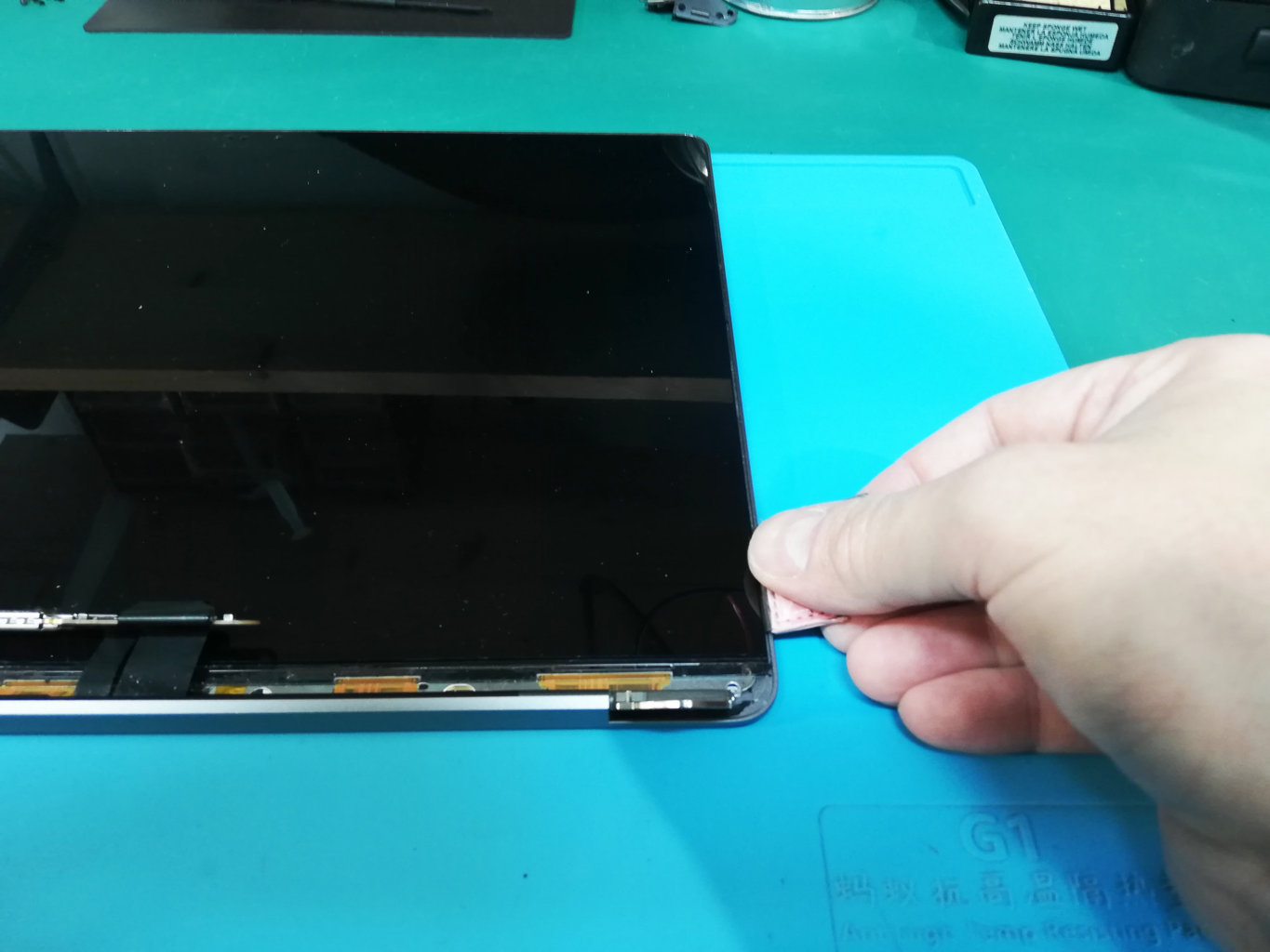 - aprire il gruppo display, estremamente sottile e delicato